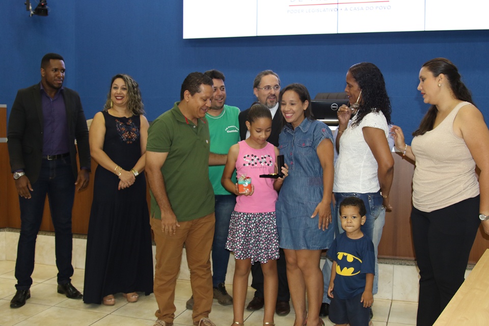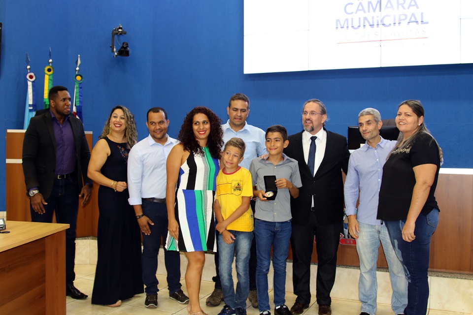André, filho da professora homenageada pelo autor do projeto vereador Professor Flodoaldo, participou da entrega das medalhas na Câmara Municipal.