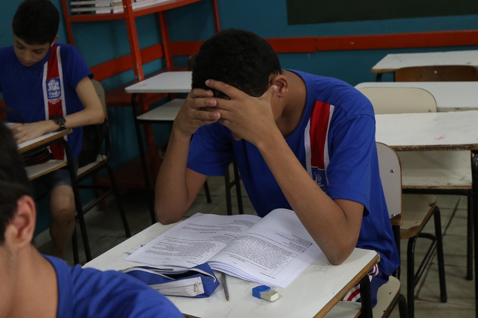 Nesta quarta, foram aplicadas as avaliações de Língua Portuguesa e Matemática para os alunos do 5º ao 9º ano e somente Língua Portuguesa para os estudantes de 1º ao 4º, cujos mesmos realizam a avaliação de matemática nesta quinta.