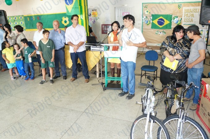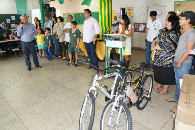 Os alunos da Escola Municipal Maria Eulália Vieira foram premiados com bicicletas, bola e celular pelo destaque em uma gincana de coleta seletiva alusiva ao Dia Mundial do Meio Ambiente, comemorado nesta quinta-feira (05 de junho).