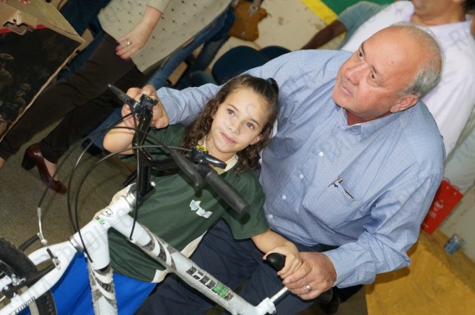 A professora do 1ºA e 1ºB, Marilane Saouza Verneck dos Santos, também recebeu uma bicicleta pelo seu empenho e apoio, tanto aos alunos, quanto à direção da Escola, durante a realização da gincana.