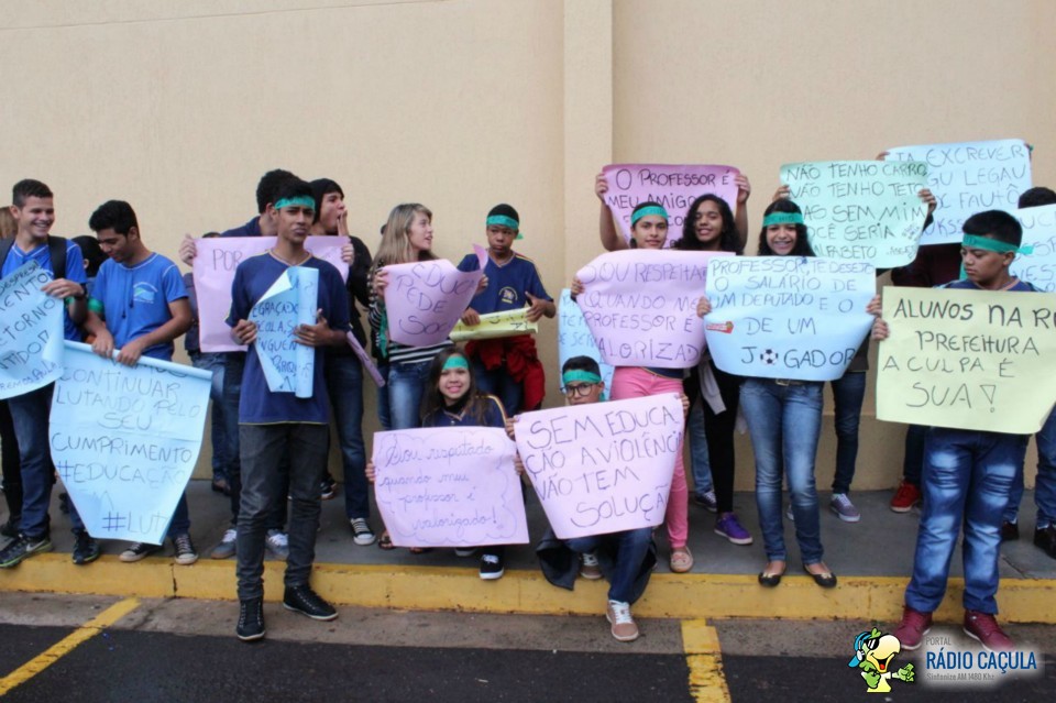 Entre os dizeres das faixas e cartazes levadas por alunos e professores estão: “alunos na rua, prefeitura, a culpa é sua”, “sem educação a violência não tem solução” e “por favor, respeite os meus professores”.
