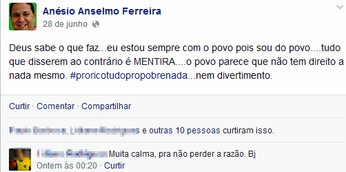 E como forma de finalizar seu protesto na rede social, Anésio Anselmo cita Deus, o povo e a palavra mentira.
