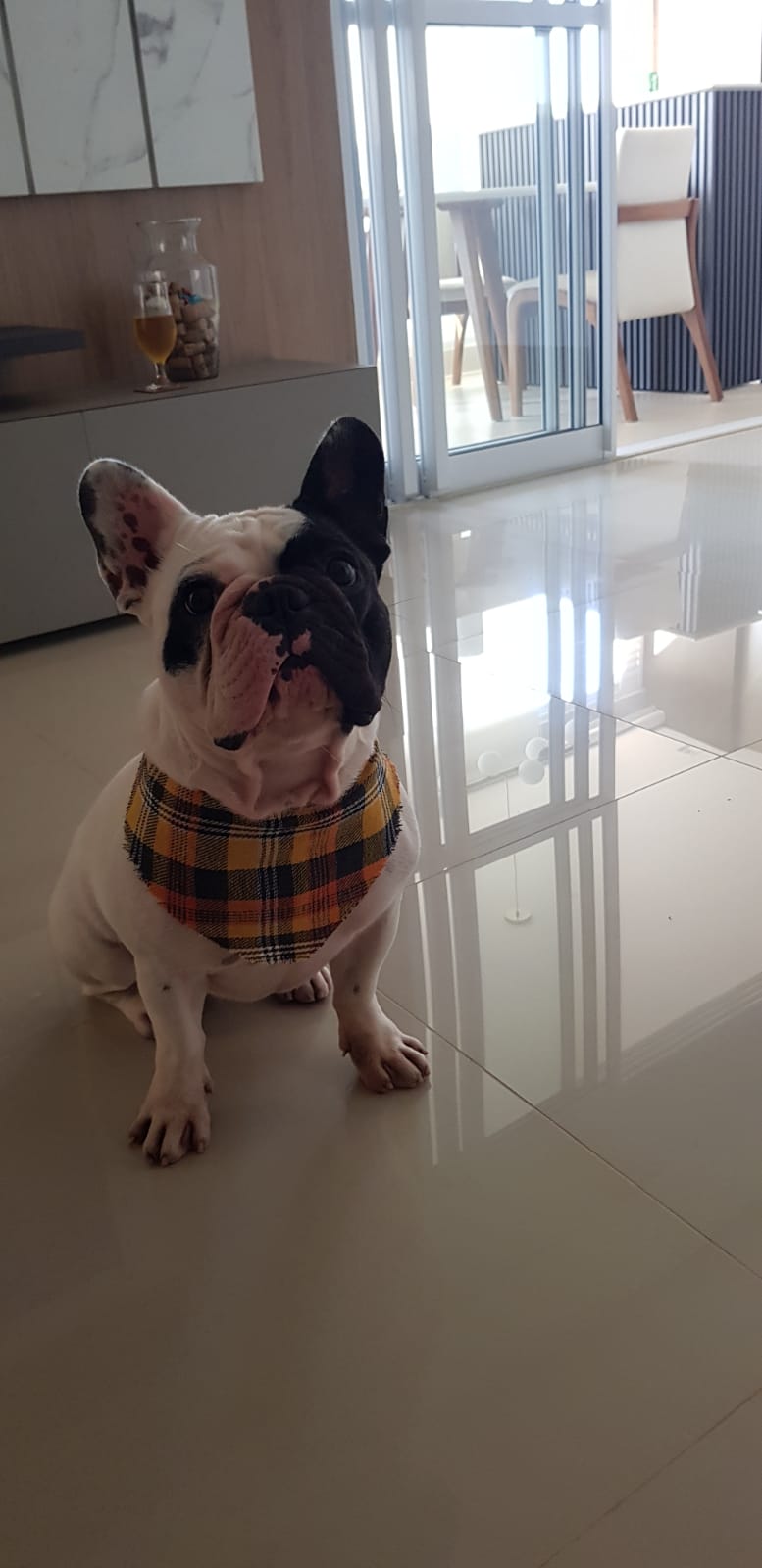 Neste domingo (18), por volta das 7:30 horas, um cachorro da raça Buldogue francês nas cores branco e preto, tipo pirata, com 2 anos desapareceu de uma residência, atende pelo nome de Bartolomeu, ele possui uma coleira peitoral preto e vermelha, os proprietários oferecem uma recompensa de R$1.000,00 reais.
