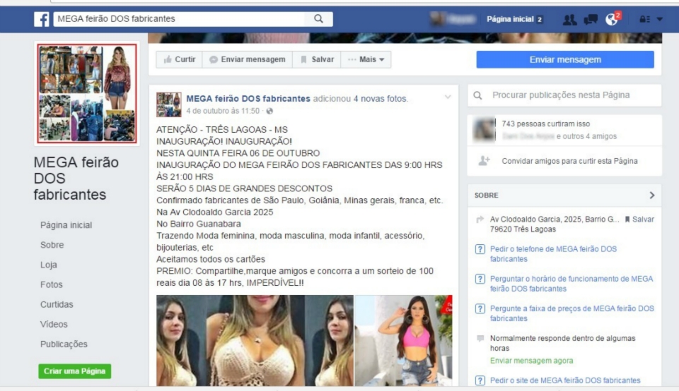 As vendas de roupas de fabricantes de São Paulo, Goiânia, Minas Gerais e Franca atraíram uma porção de três-lagoenses e teve mais de 500 compartilhamentos e mais de 600 comentários de pessoas interessadas no assunto.