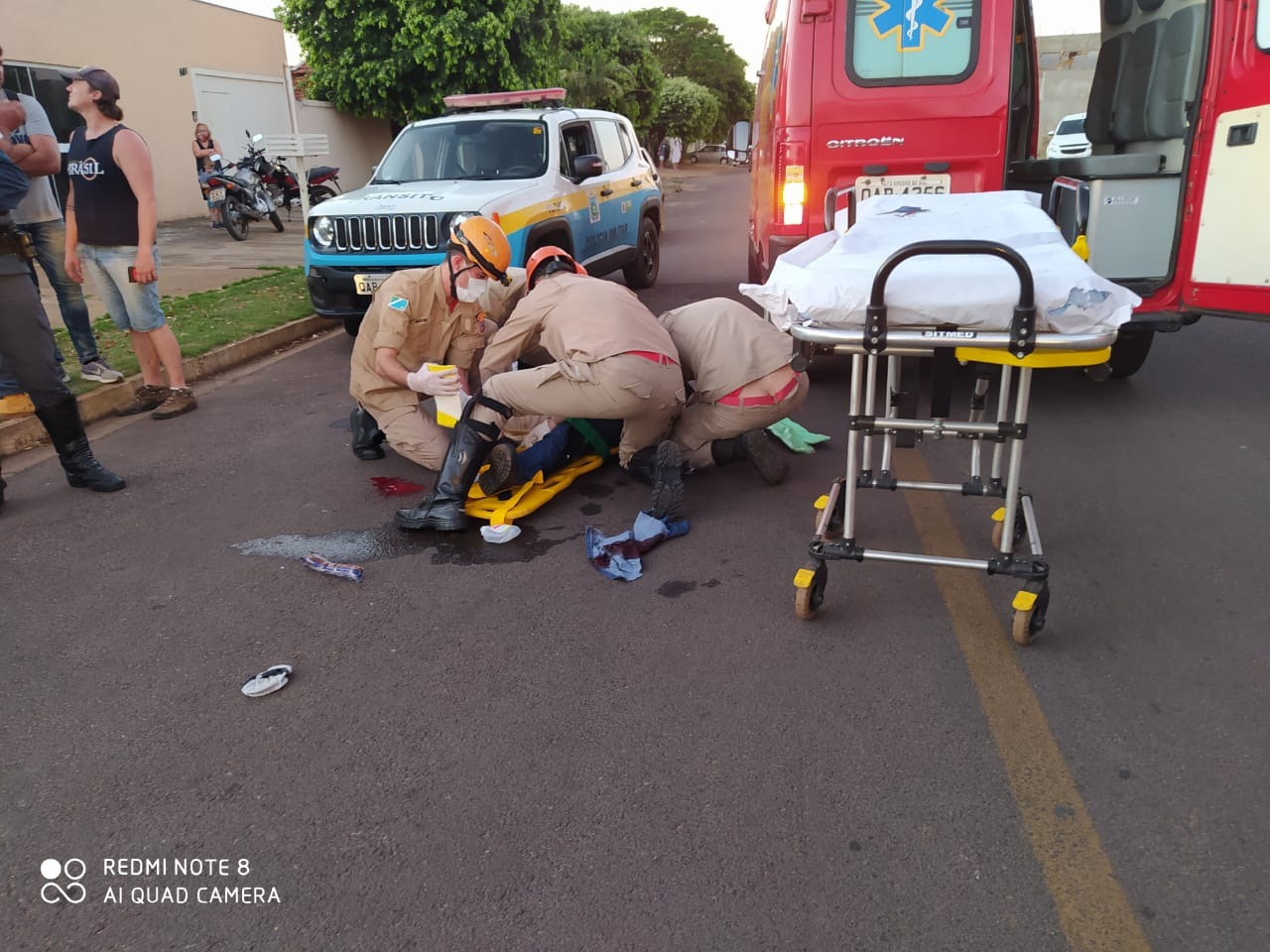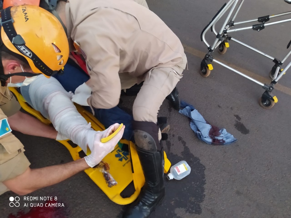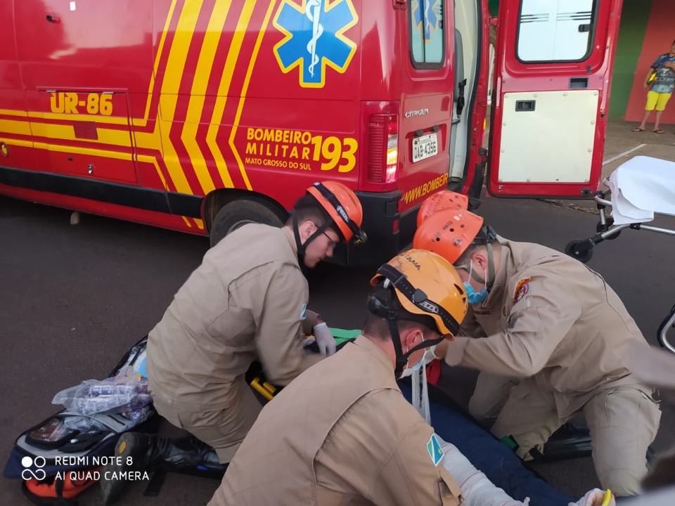 Devido os ferimentos graves em sua perna, equipes do Corpo de Bombeiros foram chamados e no atendimento à vítima, constaram uma possível fratura em sua perna