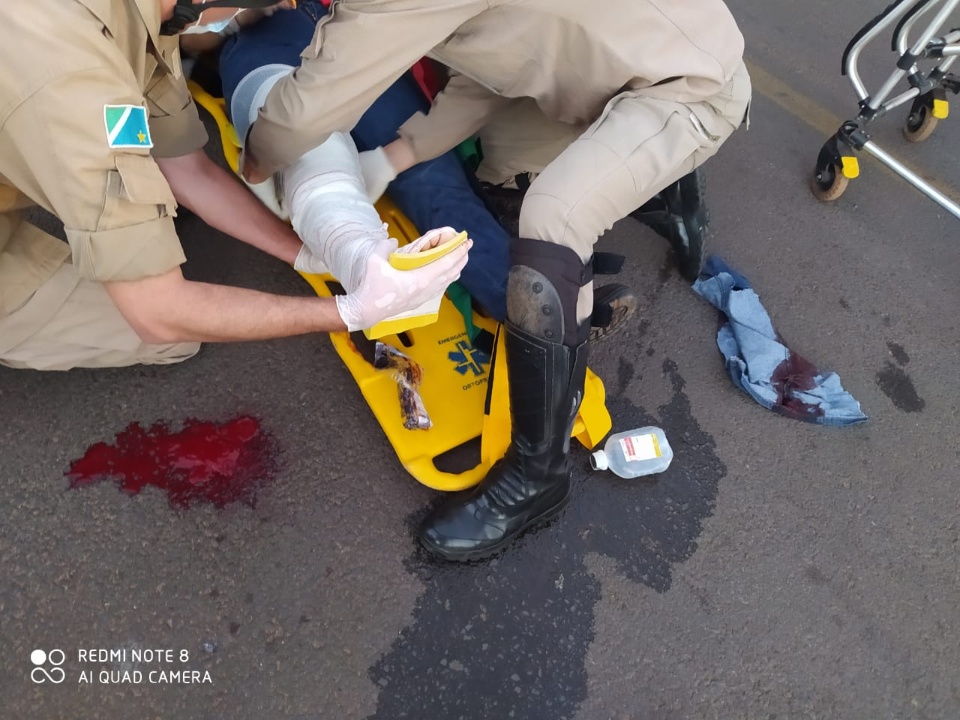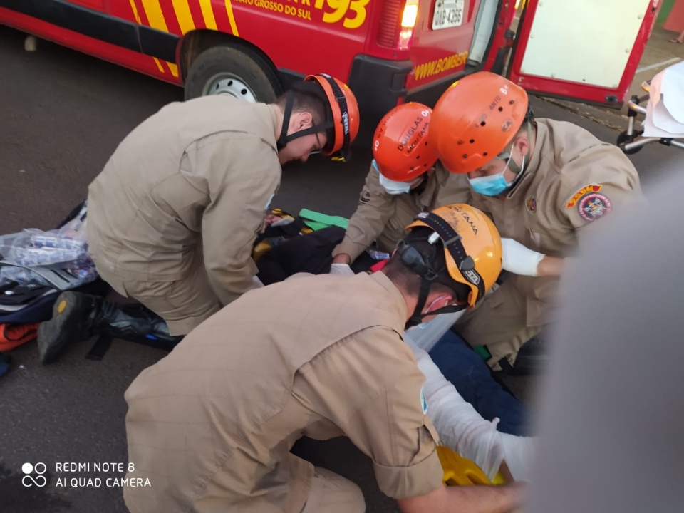 Devido os ferimentos graves em sua perna, equipes do Corpo de Bombeiros foram chamados e no atendimento à vítima, constaram uma possível fratura em sua perna.