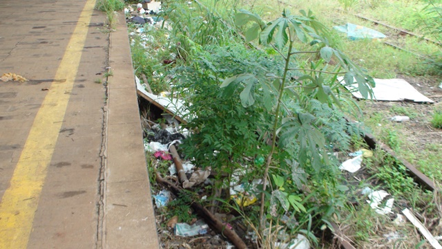 Na antiga estação ferroviária, localizada na área central da cidade, novamente constatamos o abandono de sempre, desde que os serviços ferroviários foram interrompidos, o local está completamente abandonado, sendo usado por moradores de rua, usuários de drogas e esconderijo para criminosos.