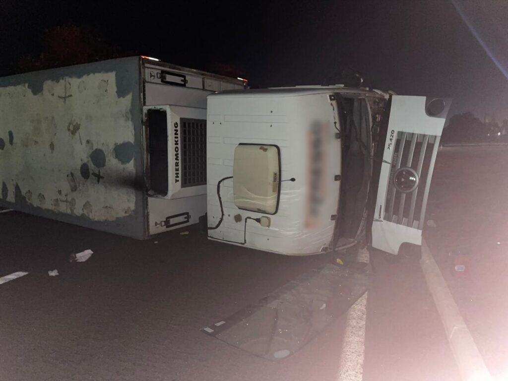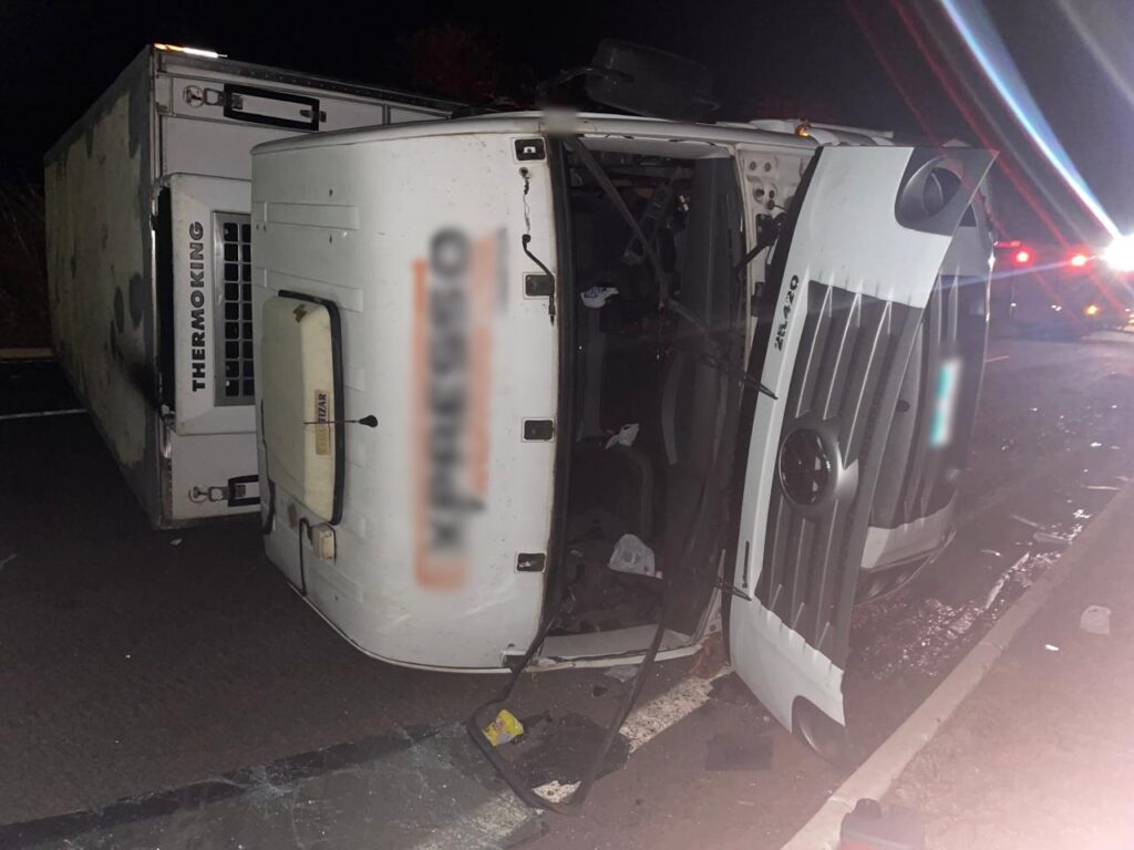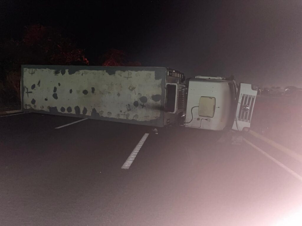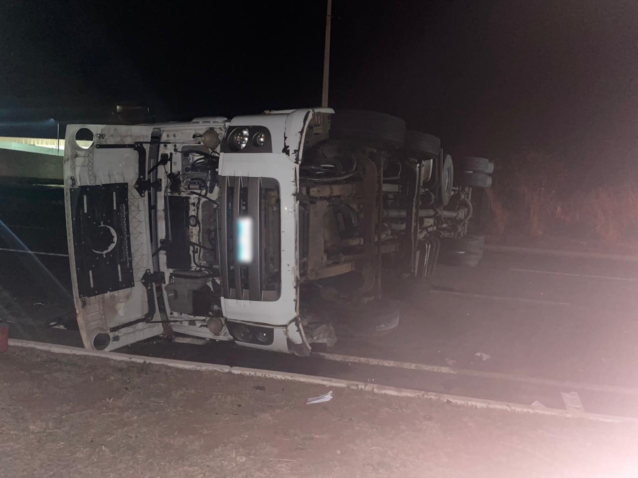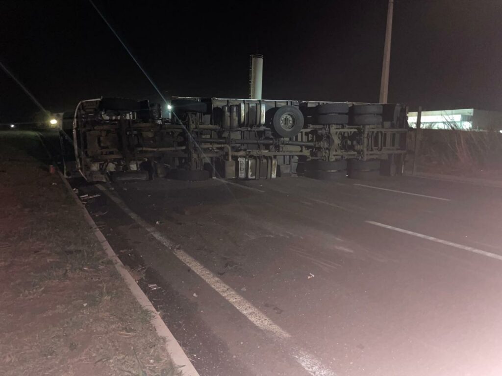 O motorista relatou que o acidente ocorreu quando tentou desviar de um ciclista que transitava pela rodovia, resultando na perda de controle e no tombamento do caminhão. Apesar do susto, o condutor saiu ileso.