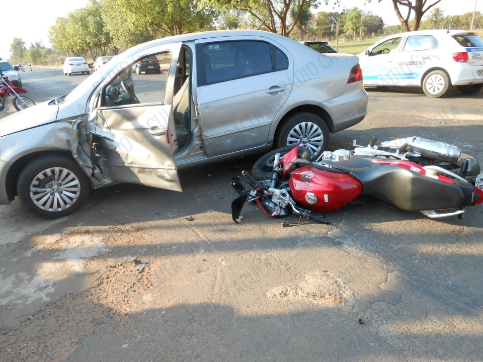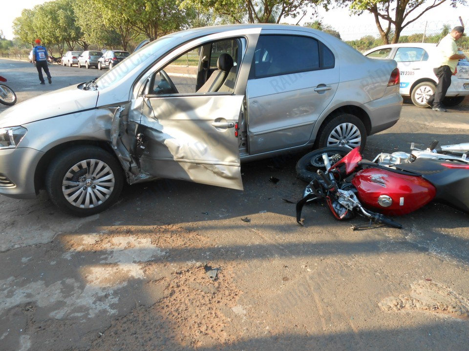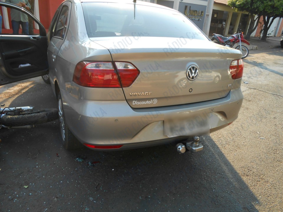 Trata-se de um acidente envolvendo carro e moto, no bairro Vila Nova, nas proximidades do quartel. Conforme informações do motorista do veículo Voyage, com placas de Três Lagoas, ele e o motociclista trafegavam na Rua João Gonçalves de Oliveira, sentido BR-262, quando em dado momento ele tentou estacionar.