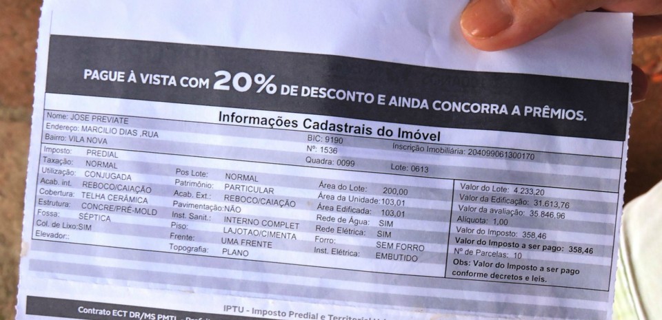 Outro morador, Marlon V. Soares, proprietário de lote no Nova Três Lagoas II, contou durante o programa Linha Direta com a Notícia, de Romeu Campos, na Rádio Caçula, que os valores pagos de IPTU são uma surpresa a cada ano. “Em 2013 paguei R$ 600,00. Ano passado caiu para R$ 254,00. Porém em 2015 o imposto saltou para R$ 953,00. Será que diminuiu no ano passado porque era ano de eleição?” Questiona o ouvinte.