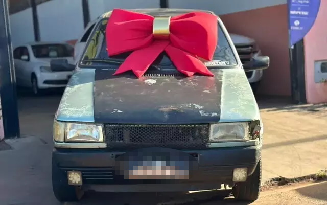 A repercussão começou em agosto de 2024, quando o Uno, visivelmente marcado pelo tempo, foi entregue ao novo dono com um laço vermelho gigante, prática comum de concessionárias e garagens para simbolizar a conquista do cliente. A imagem rapidamente se espalhou pela internet, gerando milhares de curtidas, comentários e compartilhamentos, principalmente pelo contraste entre o estado simples do veículo e o gesto simbólico da entrega.