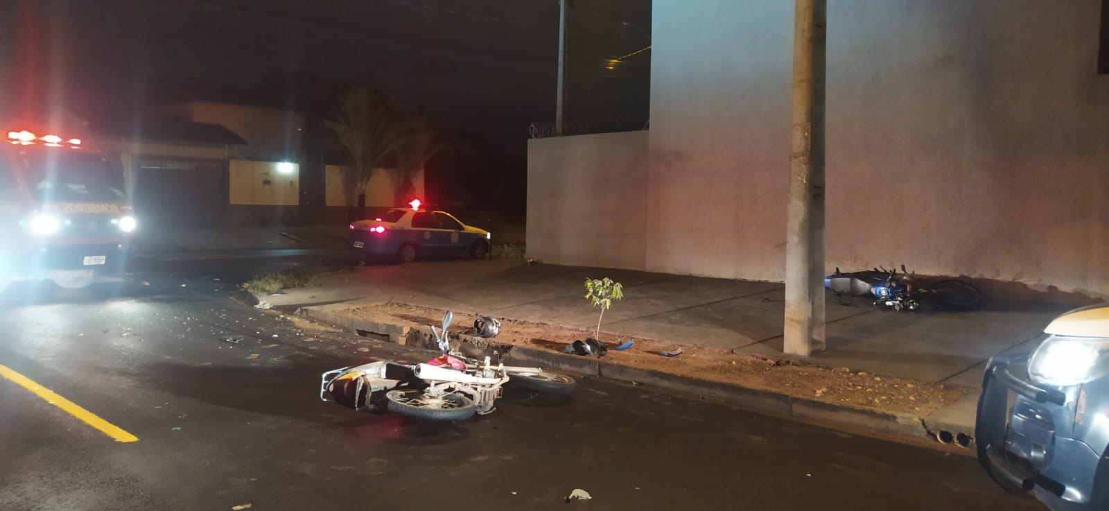 Um acidente de trânsito entre duas motocicletas foi registrado na noite desta quarta (28), na Rua Valdeci Vasconcelos no Parque São Carlos em Três Lagoas pela Força Tática.