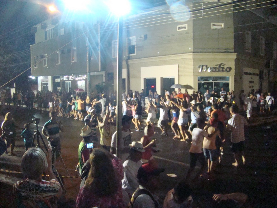 As mais de oito mil pessoas presentes para assistir o desfile das Escolas de Samba de Três Lagoas não desanimaram com a chuva e aguardaram pela Avenida Rosário Congro, com muita animação. O desejo de ver as Agremiações passarem com suas alegorias e os samba enredo que, antecipadamente, já era cantado pelo público, não acabou devido a três horas de chuva. Após reunião no Departamento de Cultura do Município, com os presidentes das Escolas de Samba e membros do Departamento do Cultura – responsáveis pela administração do carnaval de Três Lagoas, a corrida foi grande para organizar os integrantes, os carros alegóricos nas devidas formações.