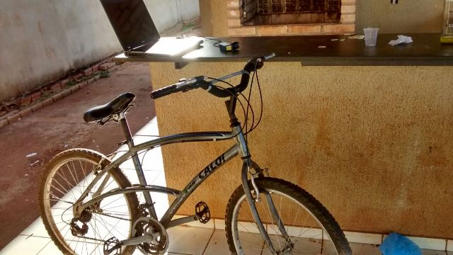 Os militares foram até o local onde realizaram a abordagem de diversas pessoas e ainda encontraram uma bicicleta Caloi que após ter seu quadro checado no sistema policial, foi constatado que o mesmo é produto de roubo.