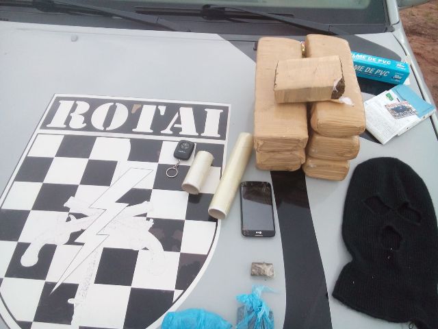 Diante da denúncia os policiais se dirigiram até o local apontado onde encontraram a porta dos fundos da residência e em busca no interior da casa os soldados localizaram dentro de uma bolsa preta sete tabletes de maconha que pesados totalizaram 5 ,2kg, um capuz e um aparelho celular.