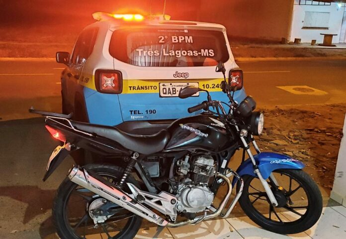 Durante um patrulhamento ostensivo pela Av. Olinto Mancini no Centro na madrugada deste domingo (24), a equipe da Rádio Patrulha avistou uma motocicleta Honda CG 125 Fan trafegando com a roda traseira na pista (empinando).