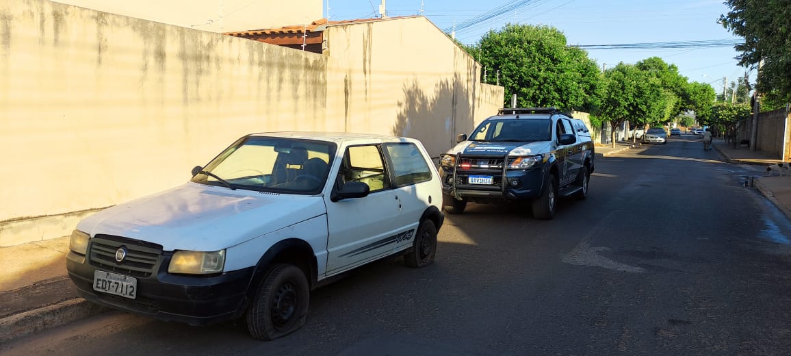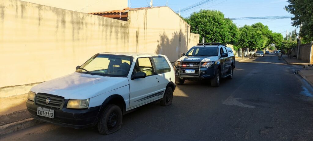 No local, a equipe visualizou um veículo modelo Fiat Uno Way branco, que segundo o denunciante, teria sido abandonando pelos criminosos no momento que tentaram fugir do local do crime.