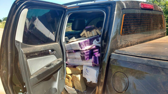 Durante a checagem da caminhonete, com placa de Campo Grande, os policiais verificaram que o veículo estava carregado de entorpecentes, que após pesagem totalizou 1212kg de maconha.