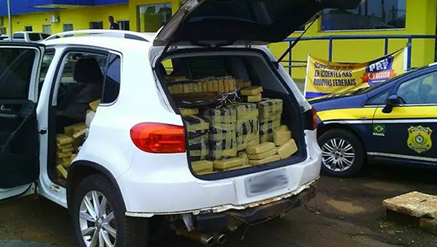 Ao chegar próximo ao perímetro urbano, inclusive com muitos quebra-molas, o condutor da TIGUAN perdeu o controle e caiu num barranco. De pronto a os federais chegaram até o motorista e ao veículo que estava cheio de tabletes de maconha.