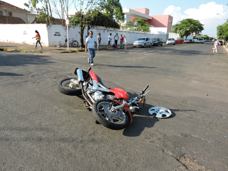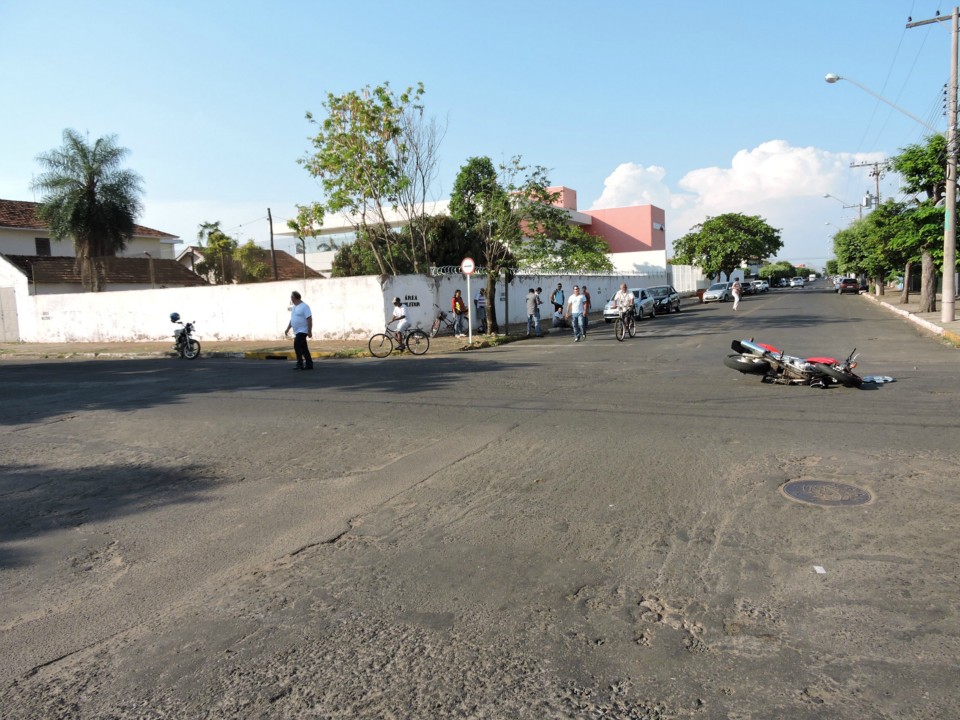 Segundo informações, o condutor da Titan, identificado como J.B.D.S de 56 anos trafegava pela Rua Elmano Soares sentido centro, quando foi atingido por uma motocicleta Twister conduzida por V.M.L ao cruzar a Av. Capitão Olinto Mancini.