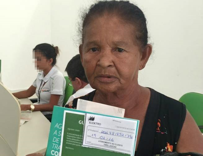 Segundo as atendentes da ELEKTRO, a idosa não teria a luz religada em seu nome por não possuir o CPF. “Quer dizer que mesmo sendo a dona do imóvel não posso pedir a religação em meu nome somente porque não tenho CPF. Isto é uma vergonha. Tenho meu nome limpo e não devo um centavo a esta empresa”, disse a idosa.