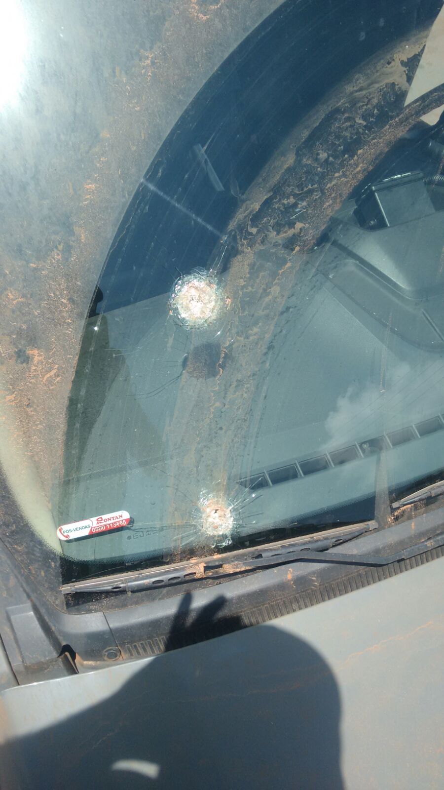 Na tentativa de abordagem, os policiais foram recebidos a tiros pelos autores, vindo a acerta a viatura no para-brisa. Em seguida tentaram fugir e foram realizados disparos por parte da equipe, acertando um dos pneus do carro.