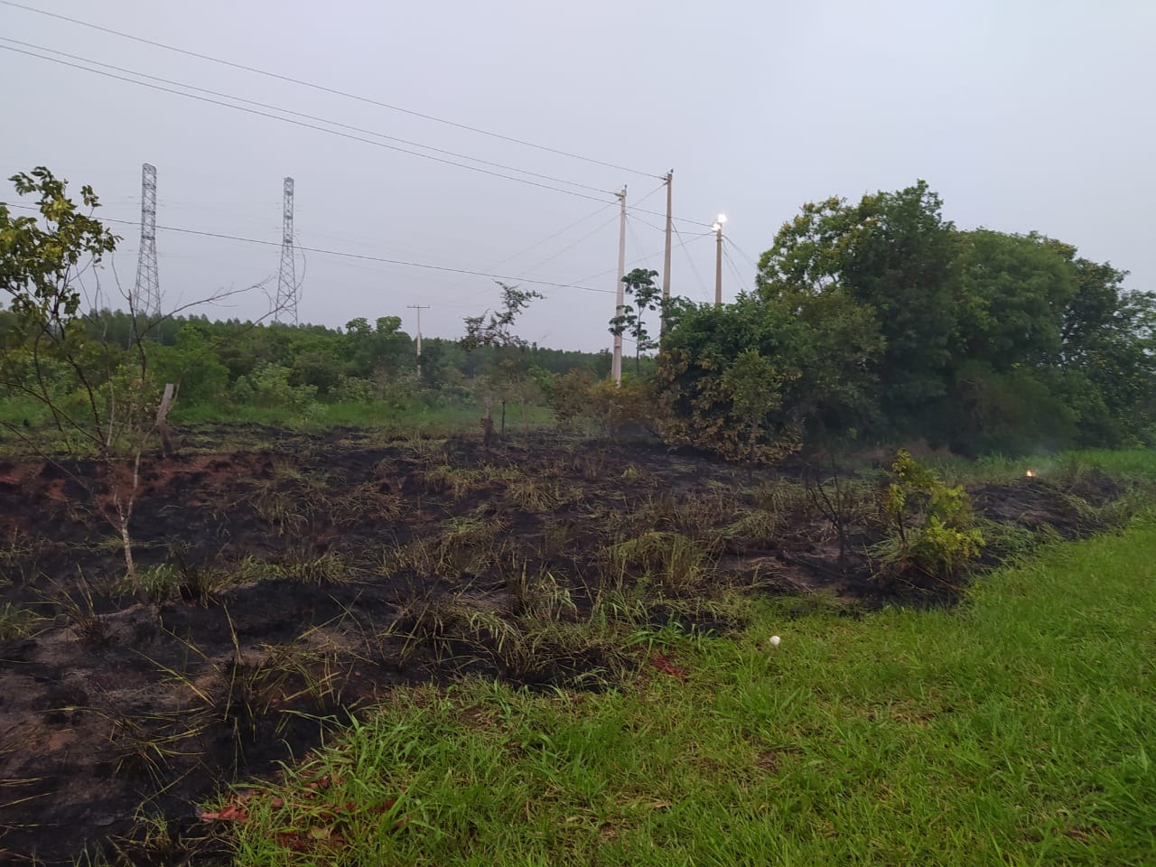 Devido o rompimento da fiação, o Corpo de Bombeiros teve que isolar a área e combater um incêndio em pastagem na localidade, causada pelos curtos circuitos.