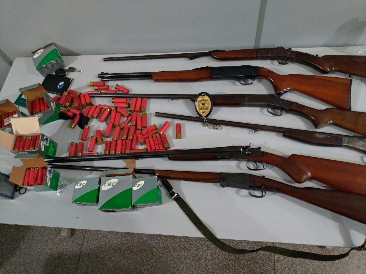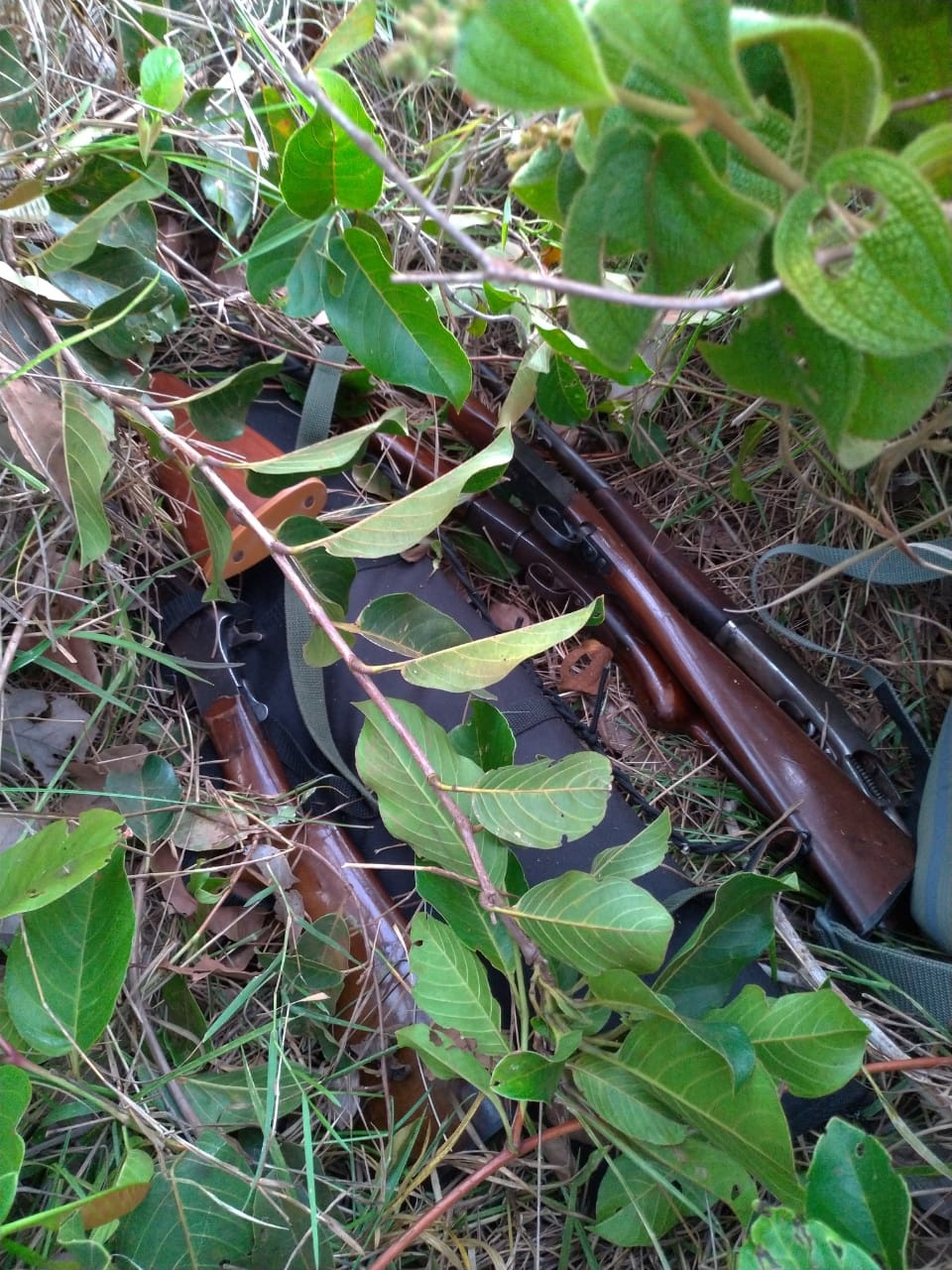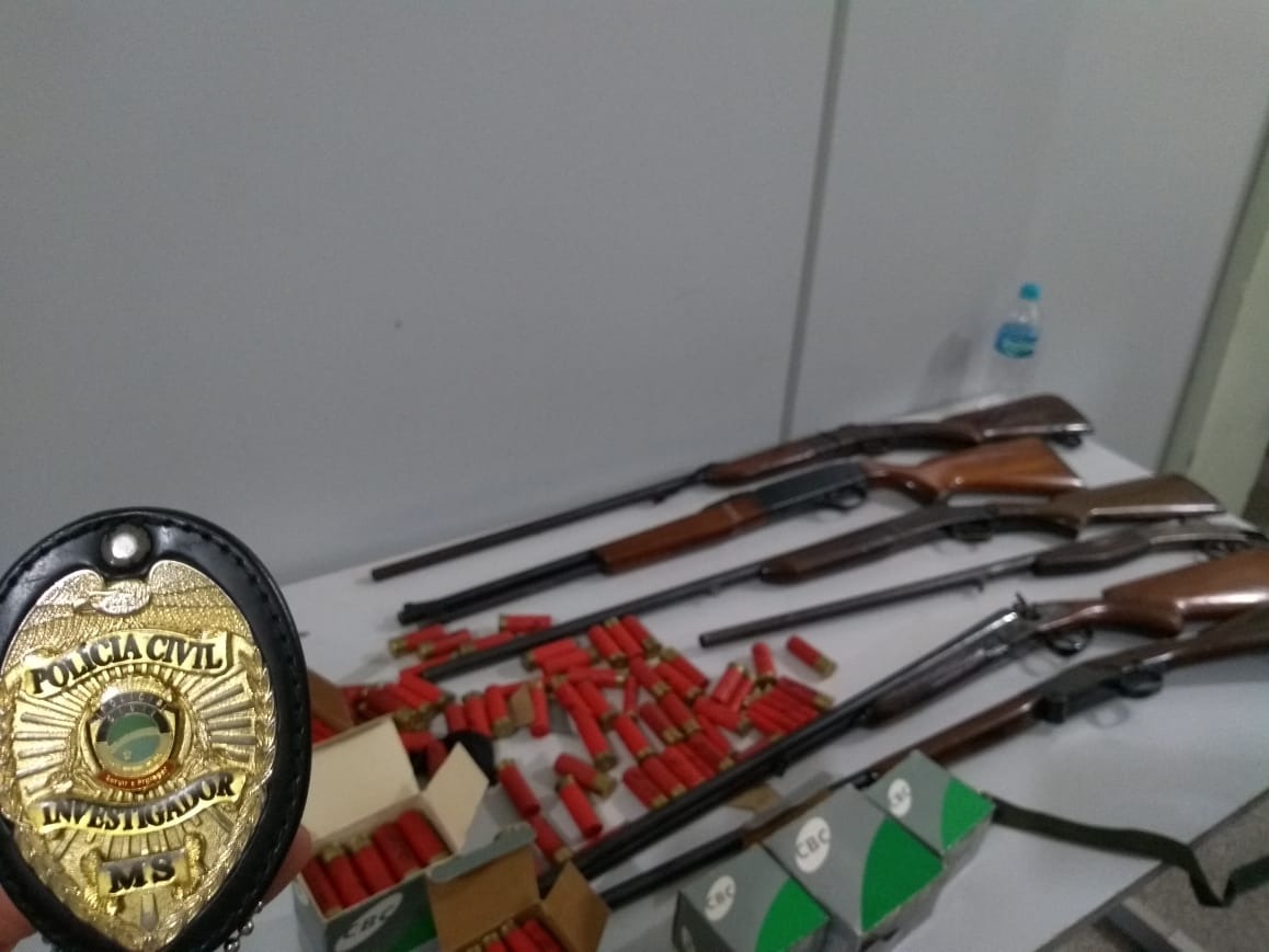 Segundo informações, foram encontradas 6 armas de fogo tipo espingarda, 76 munições calibre.12, 165 munições calibre.32 e 238 munições calibre.22, além de uma chave de um carro, documento do veículo e dois cartões bancários furtados no dia 19/12/2018 em uma fazenda na região do Alto do Sucuriú.