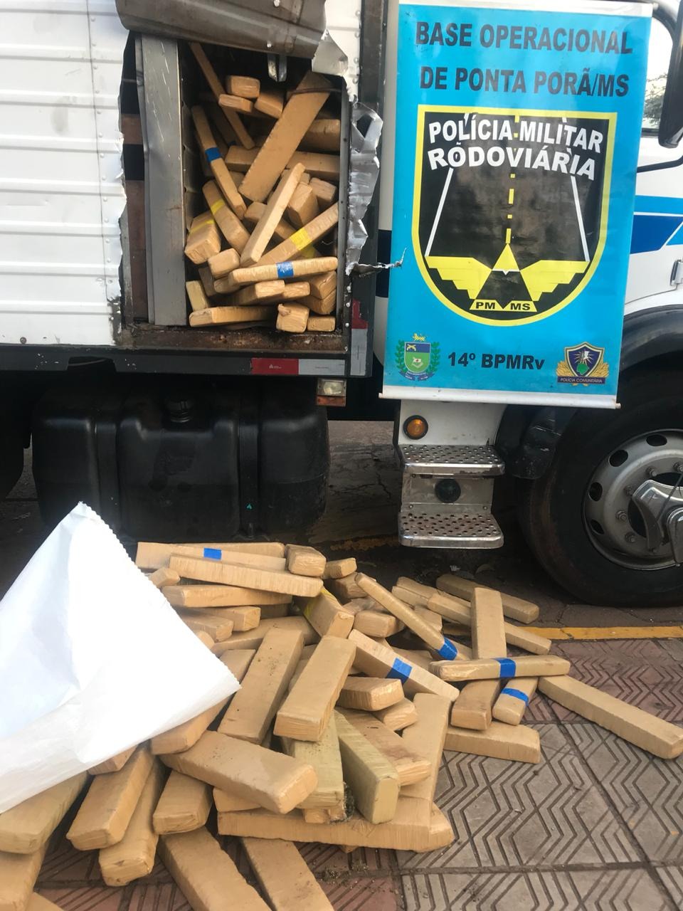 Quatro homens foram presos no início da madrugada desta quarta-feira (19) por volta da meia noite, em Ponta Porã (MS), a 323 km de Campo Grande, transportando 1.195 quilos de maconha, três pistolas, uma carabina calibre 12 e munições no fundo falso de um caminhão-baú.