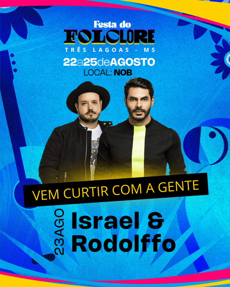 - 23/08: Israel e Rodolffo A dupla sertaneja é famosa por músicas animadas e letras que falam sobre amor e cotidiano, com hits como “Batom de Cereja” e “Só de Sacanagem”.