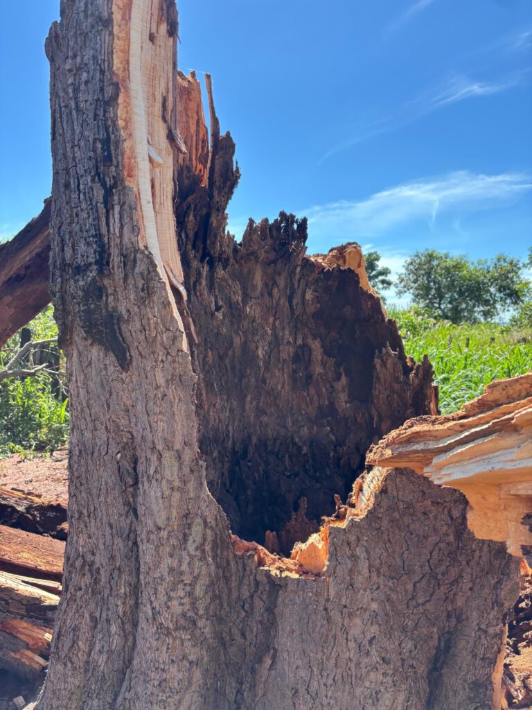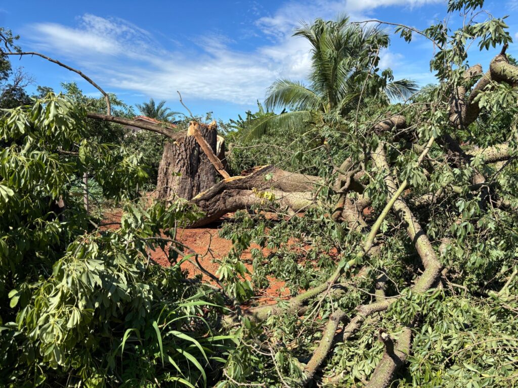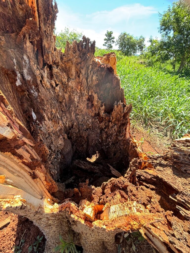Segundo a equipe, ainda será necessária a retirada total do tronco principal, que deverá ser feita pelo proprietário com o uso de trator ou maquinário pesado, devido ao tamanho da árvore.