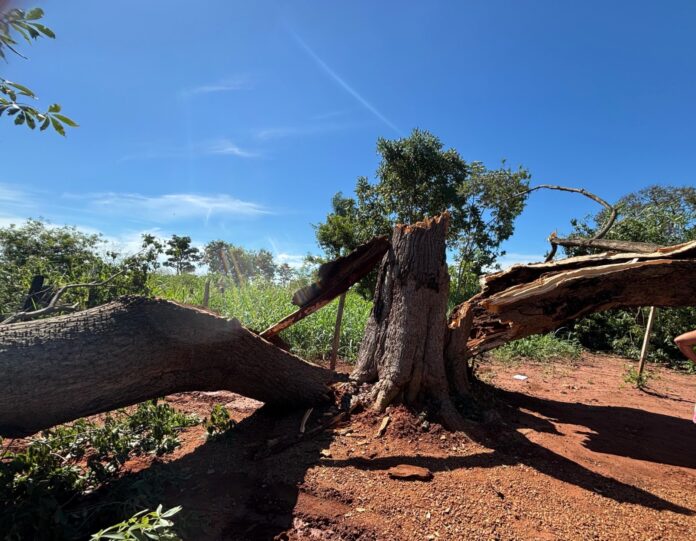 Por volta das 7h, a equipe foi acionada para atender a queda de uma árvore de grande porte, com mais de 30 anos, que desabou durante a madrugada. No local, os militares constataram que o tronco estava comprometido, oco e deteriorado, o que teria provocado a queda.