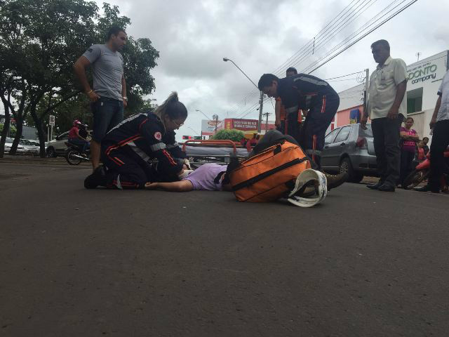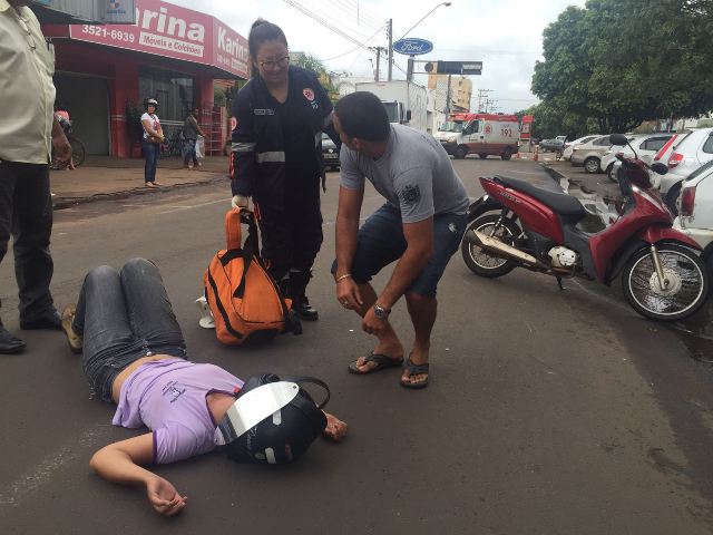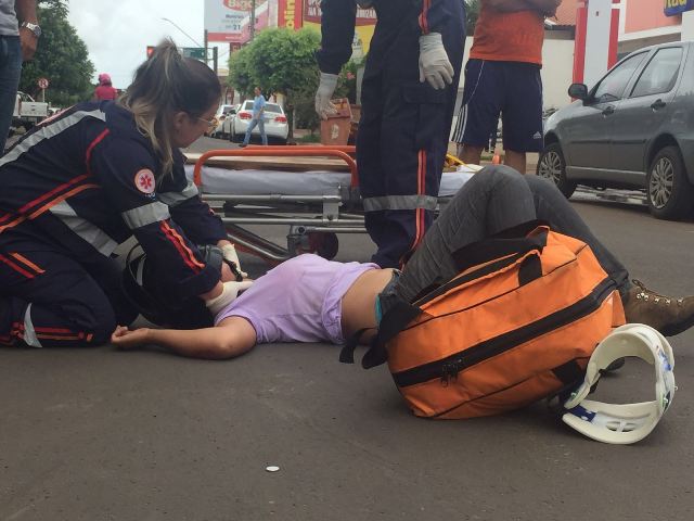 O acidente aconteceu nas proximidades da casa lotérica, quando um homem de 44 anos saiu do estabelecimento e no momento que atravessava a avenida, acabou sendo atingido por uma motocicleta pilotada por uma jovem de 23 anos.