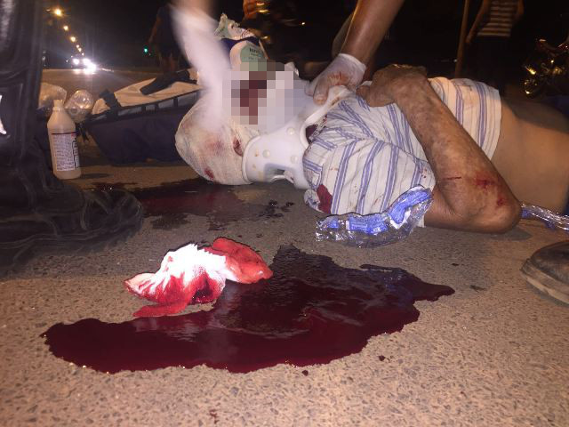 A vítima foi socorrida pelos enfermeiros do SAMU e encaminhada ao Hospital Auxiliadora em estado grave, com suspeita de traumatismo craniano.