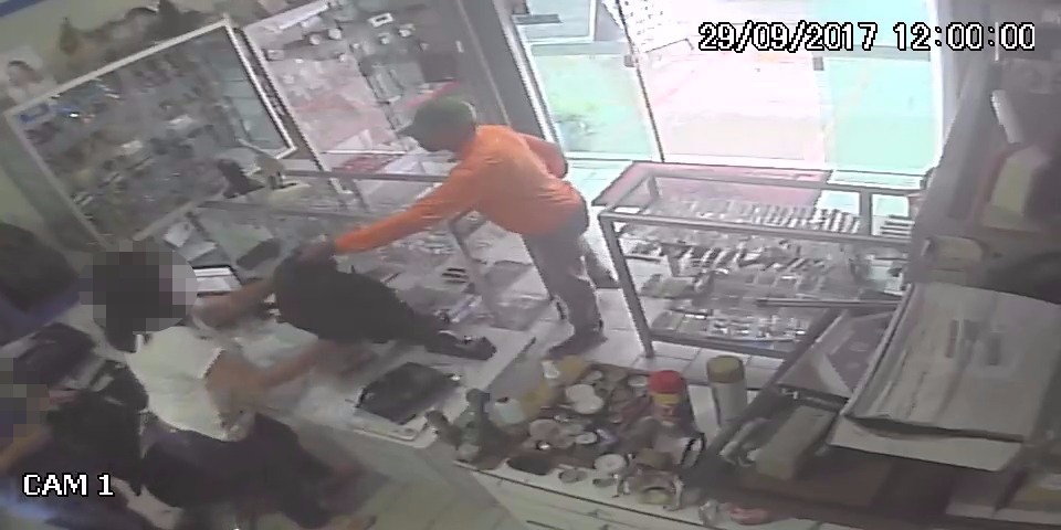 A ação foi flagrada pelas câmeras de monitoramento e em apenas 24 segundos o assaltante invadiu a loja, anunciou o roubo e levou R$ 300 em espécie da joalheria.