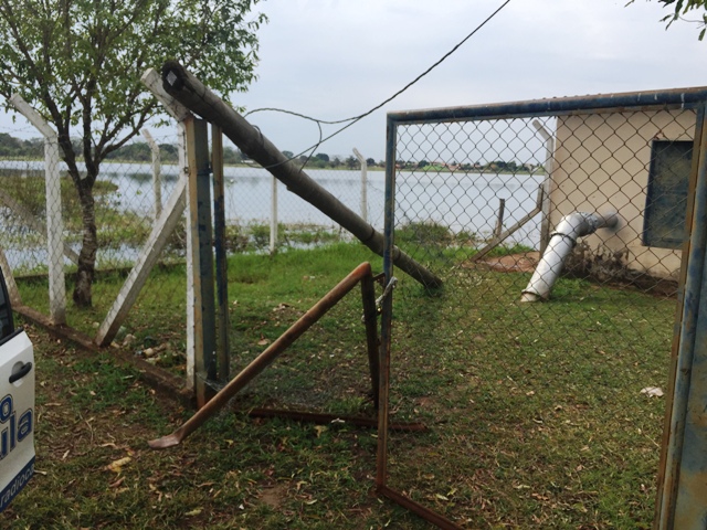 Os bandidos danificaram o portão de entrada e ao terem acesso ao interior da casa de máquinas, subtraíram algumas bombas de água, deixando apenas uma delas para trás.
