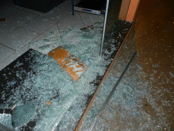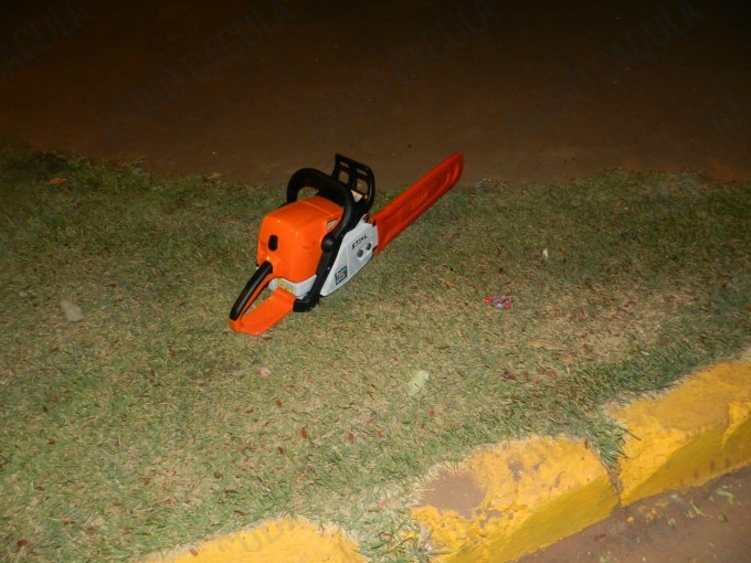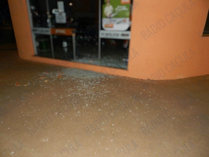 Ao chegar no local uma testemunha relatou aos patrulheiros que três pessoas teriam quebrado a porta de vidro do estabelecimento e furtado alguns materiais, além disso eles tentaram levar uma moto serra.