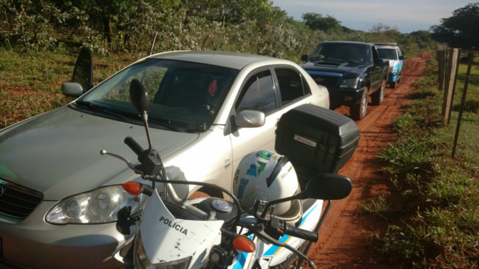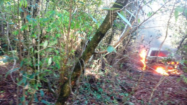 A Polícia Militar foi comunicada do crime e uma guarnição da Rádio Patrulha em rondas preventivas na região do residencial Orestinho, localizaram o veículo em chamas em meio a até verde nos fundos do condomínio.