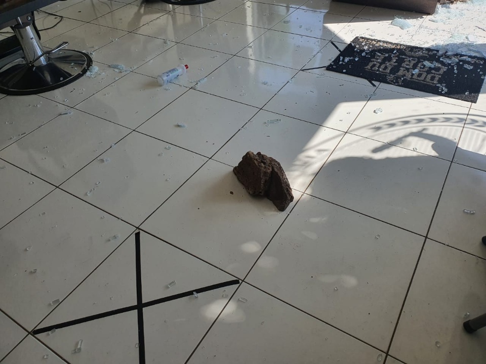 Uma pessoa ainda não identificada usou uma pedra para quebrar a porta de vidro da entrada