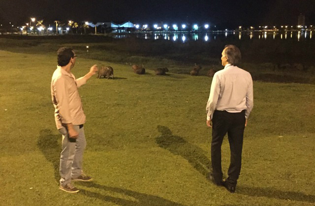 Beto Araujo aproveitou a presença do gerente do Imasul, em Três Lagoas, por ocasião da realização da Audiência Pública que discutiu as medidas de redução de atropelamentos e mortes de animais silvestres ( noite de quarta-feira -9 de dezembro), para mostrar a diversidade dos animais que vivem na Lagoa Maior e outros que procuram esse local para dormir ou para se alimentar.