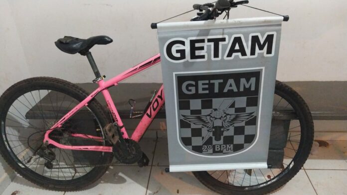 O veículo, em checagem nos sistemas criminais, constou ser produto de furto, registrado em abril de 2020, onde na época, o criminoso rompeu a cerca elétrica de uma residência, localizada na Rua Terezinha Campos, no Vila Terezinha, onde ao ter acesso ao quintal do imóvel, levou a bicicleta, localizada na posse do menor.