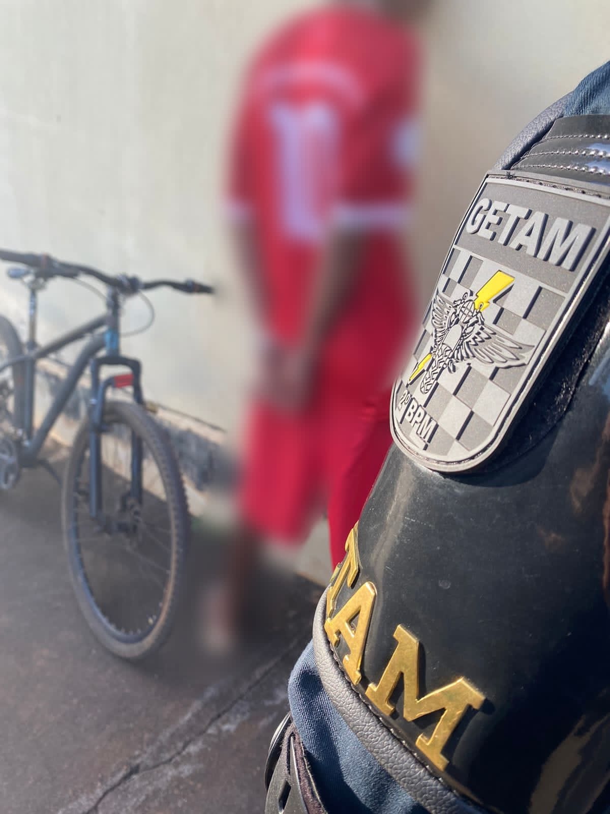 No cruzamento de uma rua do bairro, foi realizada a abordagem de um suspeito que, em uma busca pessoal nada foi localizado, porém a bicicleta que estava, numa checagem nos sistemas criminais, constou que tinha uma queixa de furto registrada em 31 de maio de 2021, sendo encaminhado ao 1°DP para as demais providências.