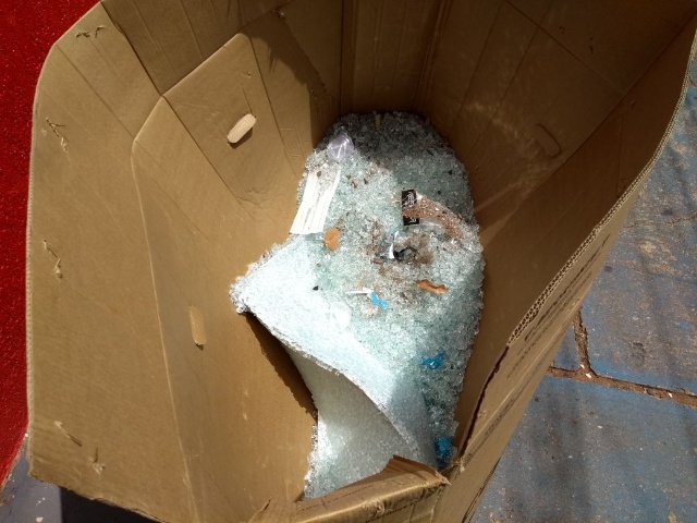 O local tinha sido limpo quando a equipe chegou, mas foi possível ver estilhaços de vidros espalhados pelo chão.