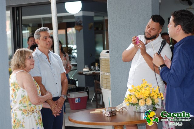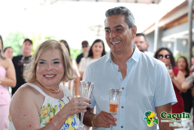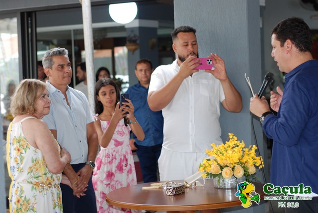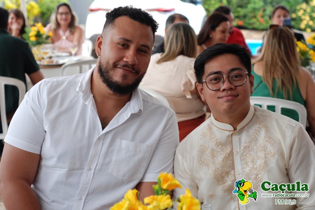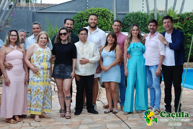 No último domingo, dia 26, a residência de Toninha Campos foi palco de uma linda comemoração pelas Bodas de Papel, celebrando um ano de união com Fábio Júnior. A cerimônia, conduzida pelo padre Cláudio, reuniu familiares e amigos próximos para marcar essa data tão especial, repleta de amor, fé e alegria. A festa foi animada pelas duplas Tato & Nando e Claudinho & Anderson, que garantiram muita música, dança e diversão do início ao fim da noite Parabéns ao casal Toninha Campos e Fábio Júnior, que receberam os convidados com simpatia, carinho e sorrisos contagiantes. Confira quem marcou presença nessa celebração inesquecível!