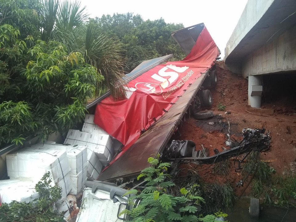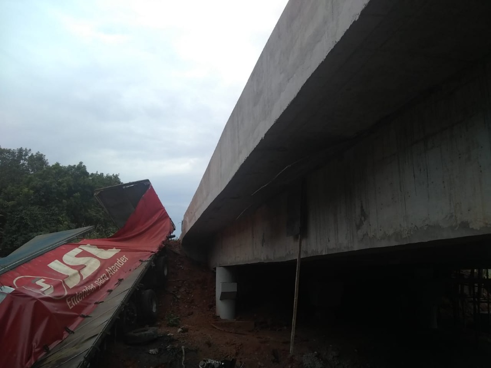 A carreta tombou no sentido Brasilândia (MS) / Três Lagoas (MS).