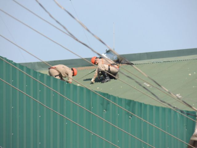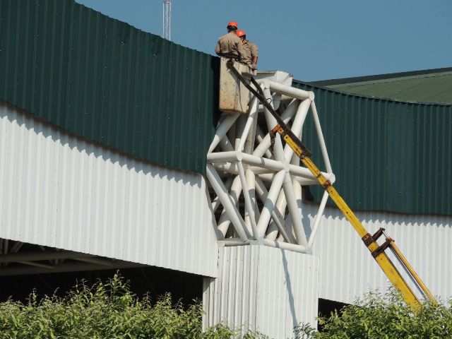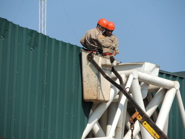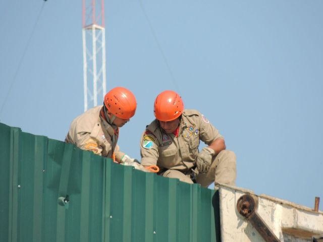 Bombeiros realizam reparos no telhado do Ginásio da Lagoa Maior