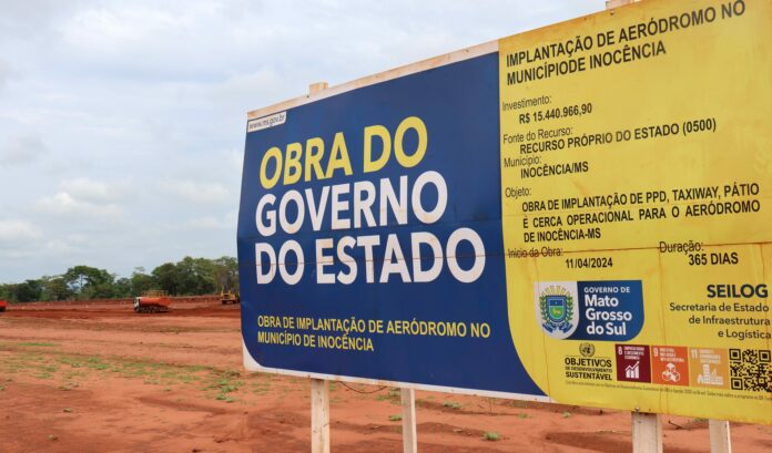 Além das melhorias nas rodovias, o Governo do Estado também investe na ampliação da infraestrutura aeroportuária. Às margens da MS-240, entre Paranaíba e Inocência, a construção de um novo aeródromo em Inocência está a pleno vapor. Segundo o superintendente de Logística e coordenador de Transporte Aéreo da Seilog, Derick Hudson Machado de Souza, a obra visa impulsionar a competitividade e atrair novos investimentos. Com recursos de R$ 15,4 milhões, o projeto inclui pistas de pouso e taxiway, pátio de aeronaves e alambrado operacional.