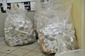 Policiais do Bope( Batalhão de Operações Especiais) apreenderam 481 pacotes de cigarro, na madrugada desta segunda-feira(28), em Campo Grande. O volume estava em um terreno baldio, aos fundos da Receita Federal, por isso a suspeita é de que o cigarro tenha sido retirado de dentro do prédio.