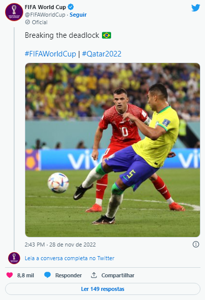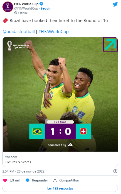 O Brasil não teve facilidades diante da organizada defesa da Suíça, mas garantiu a vitória de 1 a 0, nesta segunda-feira (28) no Estádio 974 (a famosa arena construída com contêineres às margens da baía de Doha e que será desmontada ao final da Copa), que lhe garantiu de forma antecipada uma das duas vagas do Grupo G para as oitavas de final da Copa do Catar.