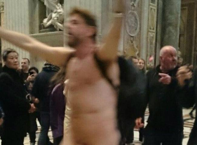 O indivíduo havia passado normalmente pelos controles de segurança, mas começou a tirar a roupa assim que entrou no templo. No entanto, ele foi rapidamente detido pela Gendarmaria Vaticana e levado a um hospital vizinho. Um internauta publicou um vídeo do momento no Youtube. O homem parece falar em italiano e depois fala em português.